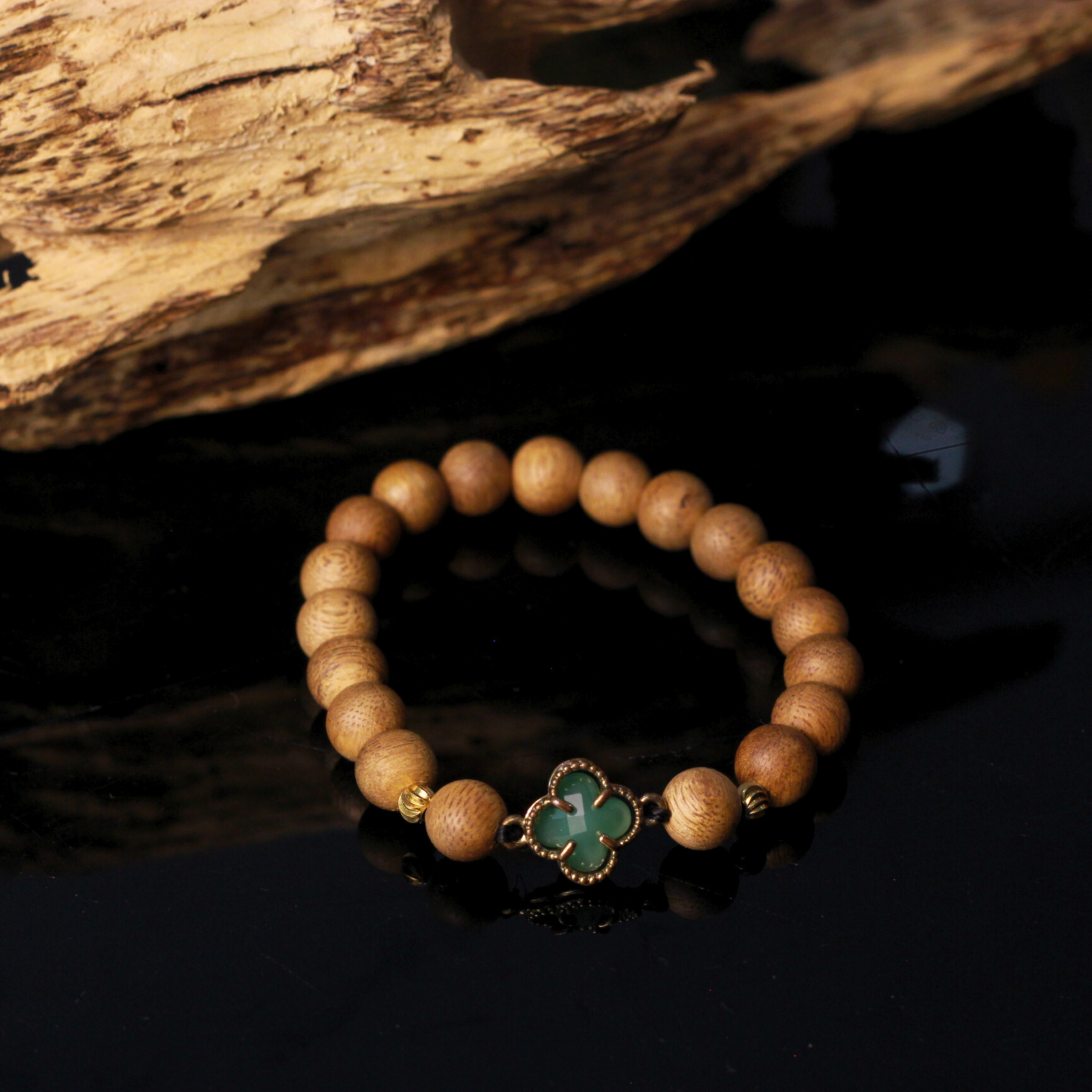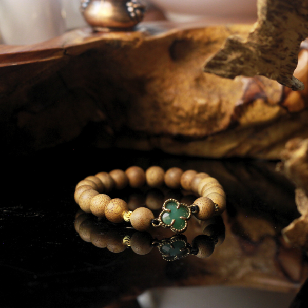 Vòng Tay Trầm Hương Charm Cỏ Bốn Lá Xanh
